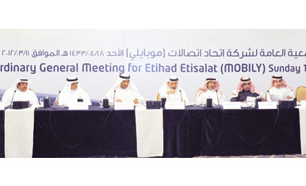 الجزيرة - الرياض وافقت الجمعية العامة العادية لشركة اتحاد اتصالات (موبايلي) في اجتماعها الذي عقد أول أمس الأحد، على توصية مجلس الإدارة بتوزيع أرباح نقدية مقدارها (1,400) مليون ريال عن النصف الثاني من العام 2011م بواقع (2) ريال عن كل سهم، بالإضافة إلى ما تم توزيعه من أرباح أولية مقدارها
