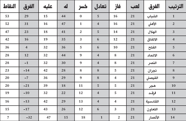 ترتيب فرق دوري زين بعد نهاية الجولة 21