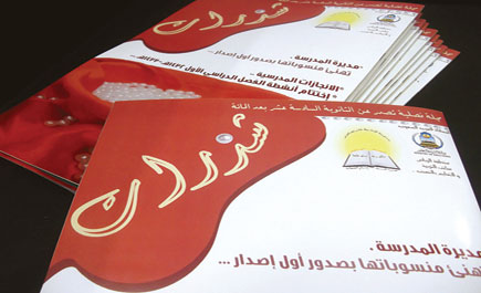 الرياض - وسيلة الحلبي صدرت المجلة الفصلية الأولى للثانوية السادسة عشر بعد المائة بعنوان شذرات بإشراف مديرة المدرسة الأستاذة ابتسام العثمان وتدقيق معلمة اللغة العربية الأستاذة حنان الحيدري وتنسيق معلمة الأحياء الأستاذة رباح البلوي وتصميم وإخراج الطالبة ولاء الشهري في الصف الثالث علمي, وقد