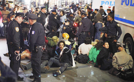 نيويورك - رويترز اعتقلت الشرطة عشرات من محتجي حركة احتلال وول ستريت خلال ليل السبت الأحد أثناء احتجاج بمناسبة مرور ستة أشهر على بدء الحركة في مهدها في حديقة زاكوتي بنيويورك. وجاء اجتياح الشرطة للحديقة قبل منتصف الليل مباشرة بعد يوم من المظاهرات والمسيرات في مانهاتن السفلى.