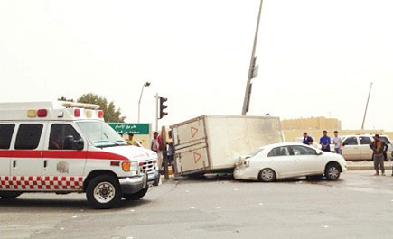 الجزيرة - وهيب الوهيبي: نجا شاب من الموت إثر انقلاب شاحنة متخصصة في نقل البضائع على سيارته من نوع كورولا ظهر يوم الخميس الماضي. وباشرت فرقة من المرور وجمعية الهلال الأحمر الحادث المروري الذي وقع على طريق الإمام سعود بن فيصل بحي الصحافة بشمال العاصمة الرياض.