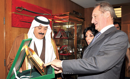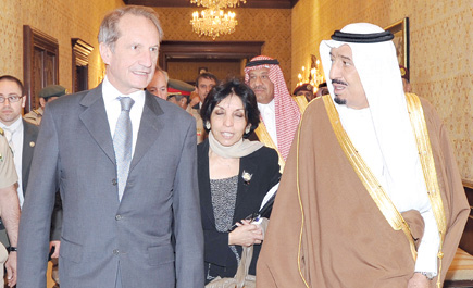 الجزيرة - واس: استقبل صاحب السمو الملكي الأمير متعب بن عبدالله بن عبدالعزيز وزير الدولة عضو مجلس الوزراء رئيس الحرس الوطني بمكتب سموه في رئاسة الحرس الوطني أمس معالي وزير الدفاع الفرنسي جيرار لونغيه والوفد المرافق له. وتم خلال اللقاء مناقشة عدد من الموضوعات ذات الاهتمام المشترك.