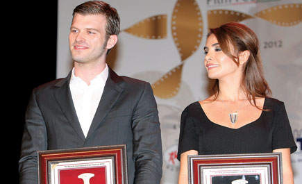 الفرنسية: النجمان التركيان كيفانش تاتليتوغ (مهند)، وسونغول أولدن (نور) يحملان جائزة الخنجر في مهرجان مسقط السينمائي الدولي السابع الذي أقيم الفترة الماضية حيث شهد المهرجان مشاركة أكثر من ثمانين فيلماً من ثلاثين دولة عربية وأجنبية.
