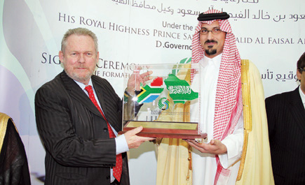 الجزيرة - الرياض: استقبل صاحب السمو الملكي الأمير سعود بن خالد الفيصل وكيل محافظ الهيئة العامة للاستثمار لشؤون الاستثمار ورئيس مركز التنافسية الوطني وزير التجارة والصناعة في جمهورية جنوب إفريقيا الدكتور روب ديفيدز والوفد المرافق له، مساء أمس بمقر الهيئة العامة للاستثمار، وبحضور رئيسي