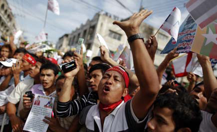 * مهاجرون مانيماريون في تايلند يهتفون بالتأييد لزعيم الديمقراطية المانيماري سو-كي حيث يتحدث عن تحرير بلاده من النظام العسكري ..رويترز *** * القوات الكولومبية تشدد على الإجراءات الأمنية من خلال نقاط التفتيش تحسباً لوقوع اشتباكات مع عصابات المخدرات.. رويترز ***