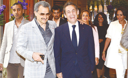 الجزيرة - المحليات: استقبل صاحب السمو الملكي الأمير الوليد بن طلال بن عبد العزيز آل سعود، رئيس مجلس إدارة شركة المملكة القابضة، فخامة الرئيس الفرنسي السابق نيكولا ساركوزي في فندق فورسيزونز جورج الخامس Four Seasons George V، وكان برفقة سموه وفد من جانب شركة المملكة القابضة يتضمن، والدكتورة