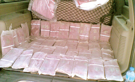 من خلال أحد المصادر السرية للإدارة العامة لمكافحة المخدرات وردت معلومات مؤكدة عن عملية تهريب كمية كبيرة من الحبوب المخدرة عبر منفذ الحديثة ، وتعاملت القوة الميدانية بمستوى رفيع مع الحدث ، وتمت المتابعة بدرجة عالية من السرية والدقة . وبالتواصل مع المصدر أمكن التعرف على موعد دخول المهرب للمملكة ونوعية