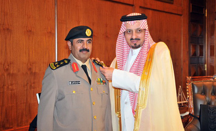 أبها - عبدالله الهاجري: قلد صاحب السمو الملكي الأمير فيصل بن خالد, أمير منطقة عسير بعد ظهر أمس الأول بمكتب سموه بالإمارة كلاً من العميد محمد بن علي الهاجري, مدير إدارة دوريات الأمن والعميد رافع بن ياسر الشهري, مدير شعبة قضايا الاعتداء على الأموال والعميد مشاري بن محمد الصعيري, مساعد مدير