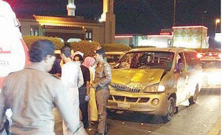 تبوك - الجزيرة : أصيبت امرأتان بإصابات مختلفة أثناء عبورهن طريقاً رئيسياً حيوياً بعد خروجهن من جامع الأمير سلطان بن عبدالعزيز (جامع الدعوة) عقب صلاة التراويح بالجامع جراء دهسن من قبل إحدى المركبات حيث تم نقلهن لمستشفى الملك خالد خالد بتبوك، وقد باشر الحادث رجال المرور كما تم نقل المصابتين