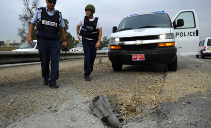 * الشرطة الإسرائيلية تتفقد موقع انفجار صاروخ فلسطيني قام بإطلاقه مجموعة من المقاومين من قطاع غزة.. (رويترز) * * * * آثار انفجار سيارة مفخخة على أحد الجسور بالقرب من قرية في كولومبيا، وتشير أصابع الاتهام إلى الثوار الذين تحاربهم الحكومة.. (رويترز) * * *