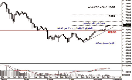الجزيرة - هشام الوليعي: أنهى مؤشر سوق الأسهم المحلية تداولاته لشهر أغسطس بمستوى 7139، محققاً مكاسب طفيفة قاربت 4 % مقارنة بشهر يوليو, وبذلك يواصل المؤشر العام الإغلاق الإيجابي للشهر الثاني على التوالي, فيما شهدت سيولة السوق ارتفاعاً أسبوعياً بنحو 10 % بقيمة إجمالية 31.9 مليارات ريال مقارنة