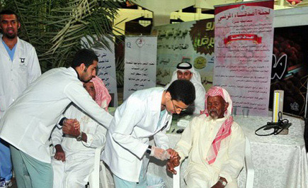 عنيزة - خالد الروقي: نظمت لجنة أصدقاء المرضى بعنيزة ركنًا في سوق التمور حيث تم توزيع البروشورات ووضع البنرات التعريفية باللجنة ودعوة المتسوقين للاستفادة من برنامج الكشف المجاني الذي يقدم لكل زائر بمشاركة طلاب كلية الطب بجامعة القصيم إلى جانب التوعية والتثقيف الصحي لبعض الأمراض المزمنة
