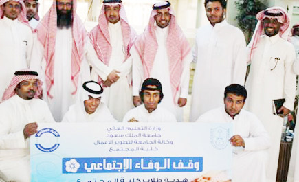 قام وفد من كلية المجتمع بجامعة الملك سعود بزيارة لدار المسنين وكان في استقبالهم مدير الدار الاستاذ عبدالله الجعد، وتأتي الزيارة من منطلق سعي الكلية لتقوية الروابط الاجتماعية والإنسانية بين أفراد المجتمع ونزلاء الدار، وحرصها على انخراط هذه الفئة في المجتمع، وقد ألقى مشرف الأنشطة الطلابية بالكلية الدكتور