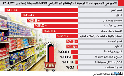 الجزيرة - الرياض: أعلنت مصلحة الإحصاءات العامة والمعلومات، أن مؤشر الرقم القياسي العام لتكلـفـة المعيشة لسبتمـبر الماضي بلغ 123,4 نقطة مقابل 122,8مقارنة بشهر أغسطس من العام الحالي وفقا لسنة الأساس (2007=100)، ويعكس ذلك ارتفاعا في مؤشر سبتمبر بـ 0.5% قياسـا بمؤشر أغسطس مشيرة إلى وصول مستوى
