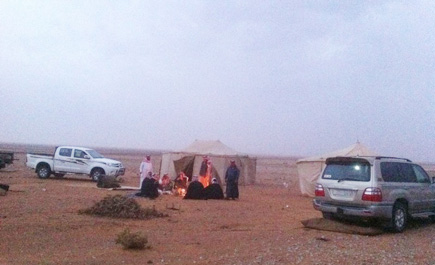 الجوف - محمد الحموان: أدى هطول أمطار متوسطة ساعات الفجر الأولى يوم السبت الماضي على منطقة الحماد شمال الجوف مع بداية موسم الوسم إلى تدفق هواة البر و (الكشاتين) إلى مواقع المخيمات في صحراء الجوف في كلٌ من المحملة شمال الشويحطية والفراريد وندفا في محاذاة سكة قطار الشمال، وقد شهدت سماء الجوف