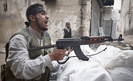 * مقاتلون من الجيش السوري الحر يجلسون خلف سلاحهم الثقيل خلال الاشتباكات التي دارات مع القوات الموالية لبشار الأسد في منطقة جبل الزاوية في محافظة إدلب... رويترز *** * الرئيس الأمريكي باراك أوباما في حديث مع أحفاد منافسه الجمهوري قبل المناظرة التلفزيونية الأخيرة التي دارت بينهما