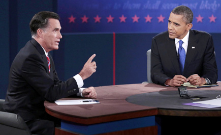 فلوريدا - وكالات: حقق الرئيس الأمريكي باراك أوباما فوزاً ساحقاً في مناظرته الثالثة والأخيرة مع منافسه المرشح الجمهوري للرئاسة الأمريكية ميت رومني مساء الاثنين, والتي اتهم فيها رومني منافسه الديموقراطي أوباما بالفشل في لعب دور قيادي لتشجيع المعارضة السورية مع تصاعد وتيرة الصراع في الدولة