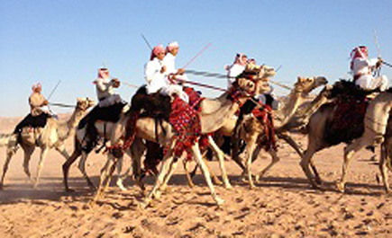 تبوك - عبدالرحمن العطوي: تحت زخات المطر ومع أول أيام عيد الأضحى المبارك يستمتع سكان تبوك ومراكزها بمشاهدة فرق الهجانة التي تظهر طلتها في صبيحة كل يوم عيد لتدخل الفرحة والسرور على الجميع في هذا اليوم المبارك ورغم انشغال العديد من السكان بذبح أضاحيهم إلا أن فرق الهجانة تجوب الأحياء السكنية