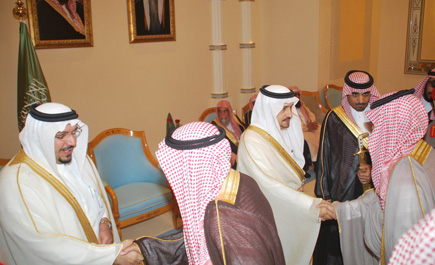 بريدة - أحمد السالم: استقبل صاحب السمو الملكي الأمير فيصل بن بندر بن عبد العزيز، أمير منطقة القصيم وصاحب السمو الملكي الأمير الدكتور فيصل بن مشعل بن سعود بن عبد العزيز، نائب أمير منطقة القصيم بعد عصر أمس الأول بصالة الاستقبال بقصر أمير المنطقة بمدينة بريدة محافظي محافظات منطقة القصيم ورؤساء