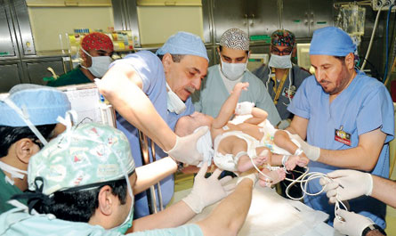 أعلن معالي وزير الصحة رئيس الفريق الجراحي لعمليات فصل التوأم السيامي الدكتور عبد الله بن عبد العزيز الربيعة انتهاء عملية فصل السيامي السعودي عبد الله وسلمان مساء أمس بمدينة الملك عبد العزيز الطبية بالحرس الوطني بنجاح - ولله الحمد - دون وجود أي معوقات. ونقل د. >>