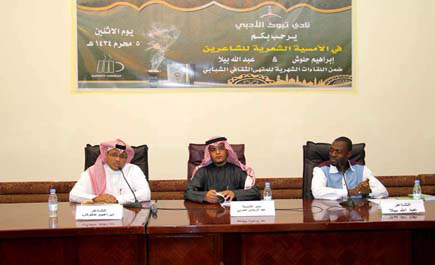 تبوك - نواف العتيبي: أكد نائب رئيس نادي أدبي تبوك سابقاً الدكتور موسى العبيدان أن الشاعر عبدالله بيلا والشاعر إبراهيم حلوش يسيران في خطين متوازيين من الناحية الشعرية؛ فهما لا يلتقيان أبداً. جاء ذلك في مداخلة له في الأمسية الشعرية التي أقامها أدبي تبوك في أولى فعاليات المقهى