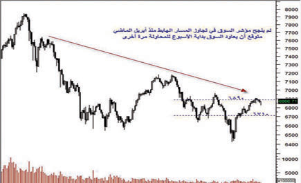 الجزيرة - هشام الوليعي: أنهى سوق الأسهم السعودية تداولات نهاية الأسبوع على مستوى 6866,71 نقطة, بارتفاع هامشي بواقع نقطتين تعادل نسبة 0,03 في المائة, ويأتي هذا الإغلاق بعد 3 جلسات متراجعة للسوق وسط استمرار انخفاض معدل التداولات بشكل ملحوظ هذا الأسبوع وصولا لمستوى 4,30 مليار ريال لجلسة
