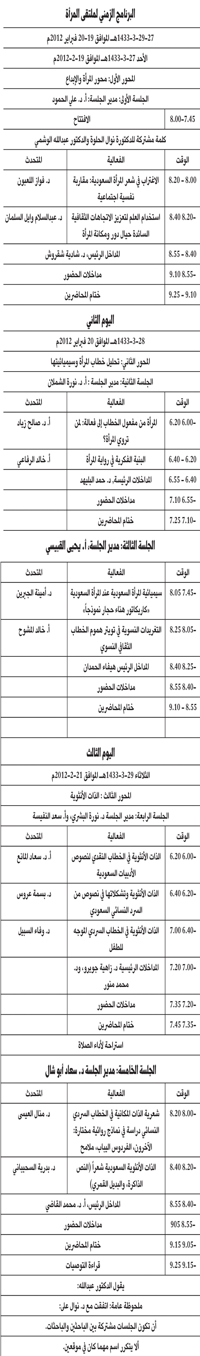 برعاية نائب وزير الثقافة والإعلام الدكتور عبدالله الجاسر تنظم جامعة الأميرة نورة بنت عبدالرحمن خلال الفترة من 27-29 ربيع الأول الموافق 19-21 فبراير 2012م ملتقى (المرأة والنص) والذي يقيمه كرسي بحث صحيفة الجزيرة للدراسات اللغوية الحديثة بجامعة الأميرة نورة، وذلك بالشراكة مع النادي الأدبي بالرياض.