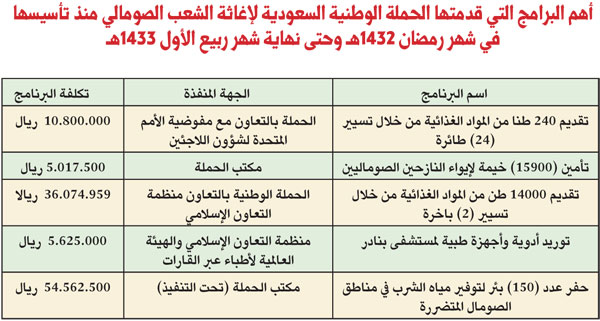 تأسست الحملة الوطنية السعودية لإغاثة الشعب الصومالي بموجب الأمر السامي رقم (40164/ م ب) وتاريخ: 20-9-1432هـ والقاضي بتنظيم حملة للتبرعات الخيرية لإغاثة منكوبي الجفاف والمجاعة في الصومال الذين تعرضوا لأسوأ موجة من الجفاف تضرب القرن الإفريقي وتنفذ البرامج والمشروعات الإغاثية في المناطق المتضررة تحت إشراف صاحب السمو الملكي الأمير نايف بن عبد العزيز آل سعود ولي العهد نائب رئيس مجلس الوزراء وزير الداخلية.
