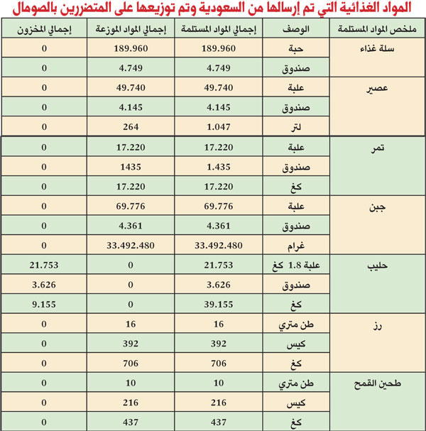 غطت الإعانات الغذائية السعودية منطقة بنادر وشبيلي السفلى بحسب التوزيع التالي: