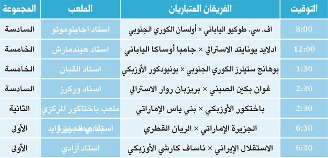 وتقام اليوم سبع مباريات أخرى لحساب المجموعات (الأولى والثانية والخامسة والسادسة) حسب الجدول التالي: