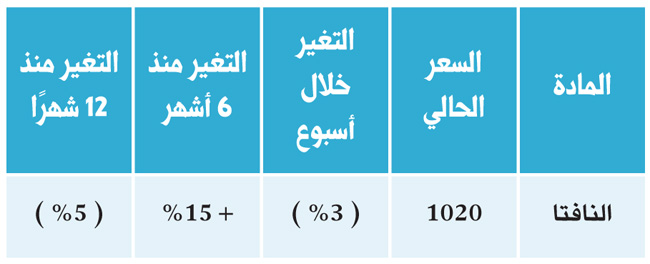 انخفضت أسعار لقيم النافتا بنحو 35 دولارا إلى مستوى 1020 دولارا للطن خلال الأسبوع.