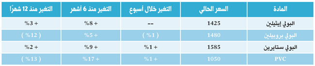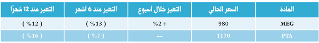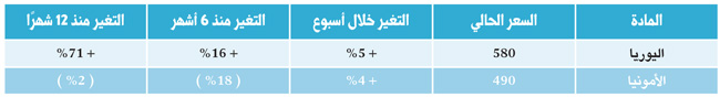 وفيما استقرت أسعار البوليمرز أو سجلت تراجعات محدودة فقد سجلت أسعار الأسمدة (اليوريا والأمونيا) ارتفاعات معتبرة، استمرارا لما حققته من ارتفاعات خلال الأسابيع الماضية.