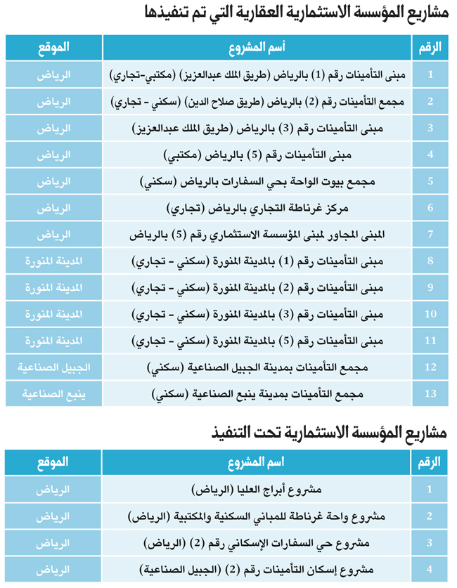 كشف محافظ مؤسسة التأمينات الاجتماعية أن استثمارات المؤسسة تتم بإستراتجية مقرونة بهيئة الاستثمار قبل تبني أي مشروعات واستثمارات، مشيرا إلى أن هناك قرابة 13 مشروعا استثماريا عقاريا تم تنفيذها و أربعة مشاريع استثمارية تحت التنفيذ، وهناك مشاريع تحت الدراسة. وقال سليمان الحميد في تصريحات صحافيه عقب جولته مع عدد من رجال الأعمال والصحافة لمشروع واحة غرناطة للمباني السكنية والمكتبية المملوك «للتأمينات الاجتماعية»: إن المؤسسة لديها العديد من الاستثمارات المحلية والخارجية، ولديها فريق يقوم بدراسة السوق بتأني كبير من خلال دراسات جدوى اقتصادية ناجحة. وبين الحميد أن الاستثمارات الداخلية تشمل المشاركة في تأسيس شركة جديدة وكذلك المساهمة في شركات أخرى لخلق فرص وظيفية للشباب. وأضاف: الاستثمار الداخلي يشمل سوق الأسهم حيث كونت المؤسسة خبرة جيدة عنه ولها تجارب فيه ذات عائد من الأرباح حتى يكون رافدا كبيرا لمعاشات المشتركين، مضيفا بأن المؤسسة تستحوذ على جزء كبير من أسهم سابك كما أن لديها اسم في البنوك المحلية وقطاع البتروكيماويات وشركات الأسمنت، مضيفا بأنه لا يوجد استثمار مضمون لكن درجة المخاطرة هي التي تحد من حجم الخسائر. وذكر الحميد أن هناك استثمارات خارجية للمؤسسة تمثل 35% من استثماراتها وتتم بإشراف ومتابعة مؤسسة النقد وكذلك مدراء محافظ معروفين في هذا المجال فيما يخص أسواق الأسهم الخارجية. وأوضح الحميد أن المؤسسة لديها 17مشروعاً تحت التنفيذ وأخرى تم الانتهاء منها، وتتوزع تلك المشاريع في عدد من مناطق المملكة، ومنها مشروع عقاري بمدينة الجبيل الصناعية بواقع 700 وحدة سكنية، ومشروع الحي الدبلوماسي بواقع 207 وحدة سكنية، ومشروع واحة غرناطة بقيمة 1500 مليون ريال وبه فندق فخم ووحدات متكاملة و650 غرفه وجناح فندقي و3 أبراح لشقق سكنية مختلفة الأحجام وصالات مناسبات تتسع لـ400 شخص وكذلك مواقع، كما أن هناك مشروعاً بحي الرويس بجدة ، ومشاريع بمدينة الجبيل الصناعية ومشروع المدينة المنورة بالمنطقة الحرم، وكذلك دخول المؤسسة في مشروع شركة أم القرى الواقع بالقرب من محطة قطار خادم الحرمين من منطقة جبل عمر بحجم استثماري 10% بما يعادل بليون ريال.