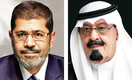 بحث خادم الحرمين الشريفين الملك عبدالله بن عبدالعزيز - حفظه الله - مع فخامة الرئيس محمد مرسي رئيس جمهورية مصر العربية مجمل الأوضاع على الساحتين الإقليمية والدولية. كما جرى خلال اتصال تلقاه الملك عبدالله الليلة الماضية من الرئيس مرسي الحديث حول العلاقات بين البلدين>>
