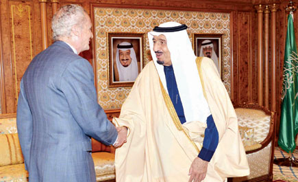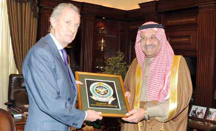 الجزيرة - واس: استقبل صاحب السمو الملكي الأمير خالد بن سلطان بن عبد العزيز نائب وزير الدفاع في مكتبه بالمعذر أمس معالي وزير الدفاع الأسباني بدرو مورينيس أولاتي والوفد المرافق له . وجرى خلال الاستقبال استعراض الموضوعات ذات الاهتمام المشترك بين البلدين . حضر الاستقبال معالي رئيس هيئة الأركان