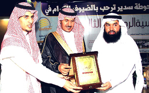 بعد ذلك قام سعادة رئيس مركز حوطة سدير الأستاذ فهد بن صالح الزكري ومدير منتديات حوطة سدير نصرالله النصرالله بتسليم دروع تذكارية مقدمة من المنتديات لكل من مستضيف الأمسية رجل الأعمال الشيخ حمد بن عبدالكريم المهيدب، وداعمي الامسية السنوات الماضية الاستاذ خالد النصار وجمعية حوطة سدير الخيرية، بعدها توجه الجميع لتناول طعام السحور المعد بهذه المناسبة.