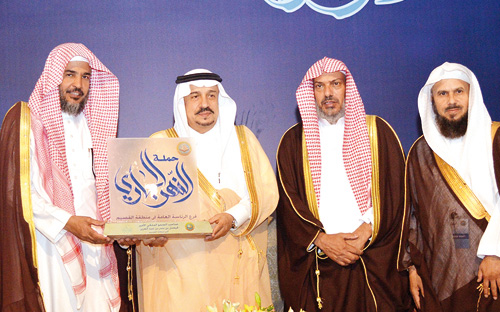 وأكَّد سمو أمير منطقة القصيم اهتمام حكومة خادم الحرمين الشريفين بتطوير جهاز الهيئة الذي يُعدُّ من أهم أجهزة الدولة، لافتًا الانتباه إلى أن منسوبي الهيئة أخذوا من مسمى مرجعهم خير مأخذه وهي رسالتهم التي يعملون عليها وهي الأمر بالمعروف والنهي عن المنكر، داعيًا الله أن يديم على هذه البلاد نعمه الظاهرة والباطنة. بعدها كرّم سمو أمير المنطقة الرعاة والمشاركين في حفل تدشين الحملة وهم الشيخ عبد العزيز بن إبراهيم البراهيم لتبرعه بالمصلَّى المتنقل استلمه نيابة عنه الشيخ تركي العساف، وشركة الشِّتاء والصيف استلمه الأستاذ خالد الخضر الراعي الرسمي وجزف للدعاية والإعلان استلمه الأستاذ راشد الرقيبة، ثمَّ تسلّم سموه من مسئولي الفرع درعًا تذكاريًّا بهذه المناسبة. عقب ذلك قصّ سموه شريط افتتاح المعرض المصاحب للحملة وتجوَّل في أرجائه، ثمَّ دشّن سموه المصلَّى المتنقل، واطلع على تجهيزاته.