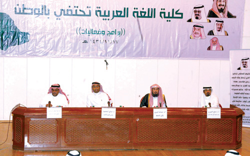 برعاية وكيل جامعة الإمام محمد بن سعود الإسلامية فضيلة الدكتور عبدالله الشثري أقيمت ندوة بمناسبة احتفائية الجامعة باليوم الوطني شارك فيها كل من: الدكتور عبدالملك بن عبدالعزيز آل الشيخ وكيل كلية اللغة العربية للتطوير والجودة، والدكتور صالح الشويرخ عميد معهد تعليم اللغة العربية، وأدار الندوة الدكتور صالح بن عبدالعزيز المحمود رئيس قسم الأدب.