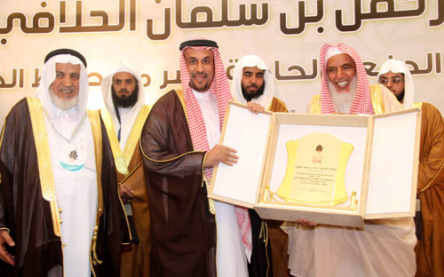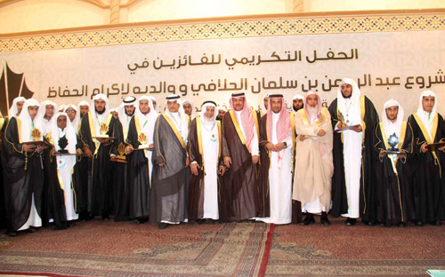 رعى معالي مدير جامعة المجمعة الدكتور خالد بن سعد المقرن بالقاعة الماسية في محافظة الزلفي حفل تكريم الدفعة الحادية عشرة من حفظة كتاب الله الكريم ضمن مشروع عبدالرحمن بن سلمان الحلافي ووالديه لإكرام الحفاظ الذي أقامته جمعية تحفيظ القرآن بحضور وكيل محافظة الزلفي الأستاذ سعود بن عبدالعزيز المنيع والشيخ عبدالله المزروع أمين عام جمعيات تحفيظ القرآن الكريم بالمملكة والشيخ سلمان بن عبدالرحمن الحلافي والأستاذين فهد وبسام ابني سلمان الحلافي عضوي أمانة الجائزة وعدد من المسؤولين ووجهاء المحافظة ووكلاء وعمداء الكليات بجامعة المجمعة.