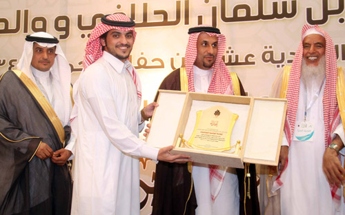 وفي ختام الحفل قام معالي د. المقرن والشيخ الحمد والأستاذ المنيع والشيخ الحلافي بتكريم الحفظة ومديري الحلقات المتميزة كما تم تكريم المساهمين وهم الوجيه مقبل بن صالح الملحم والأستاذ مزعل السويكت وإدارة القاعة الماسية.