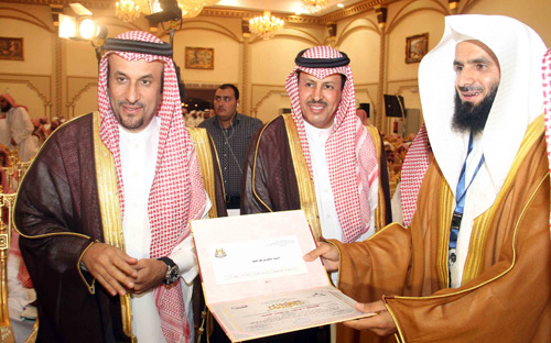كما أتقدم بالتهنئة الخالصة لأولياء أمور حفظة كتاب الله الذين ربوا هؤلاء الشباب وساهموا في تنشئتهم وأن يجزل لهم الأجر والمثوبة وأن يبارك في أعمالهم وأعمارهم كما لا يفوتني في هذا المقام أن أقدم مساهمة من الجامعة للمشاركة مع هذه الجمعية المباركة في تقدير هؤلاء الحفظة لكتاب الله بأن تقدم جامعه المجمعة من خلال معهد الأمير سلمان للبحوث والخدمات الاستشارية دورات مجانية لهؤلاء الحفظة في أي تخصص يختاره كل منهم وأخر دعوانا أن الحمد لله رب العالمين.