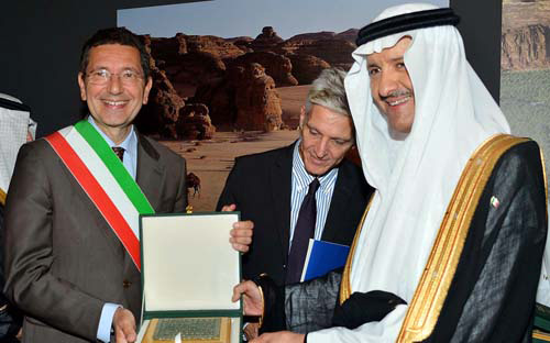 افتتح صاحب السمو الملكي الأمير سلطان بن سلمان بن عبد العزيز، رئيس الهيئة العامة للسياحة والآثار، ومعالي عمدة روما البروفيسور النيتسيو مارينو معرض «السعودية ملتقى الحضارات»، المقام في متحف «فتريانو» بالعاصمة الإيطالية روما، وتنظمه الهيئة العامة للسياحة والآثار ضمن الاحتفال بمناسبة مرور (80) عاماً على قيام العلاقات الدبلوماسية بين المملكة العربية السعودية وجمهورية إيطاليا.