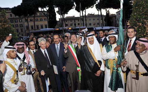 من جانبه قال معالي عمدة روما البروفيسور النيتسيو مارينو: إن روما تعيش يوماً خاصاً لأنها لحظة تاريخية ومحطة على مسار العلاقات الإيطالية - السعودية، عن علاقة تتنامى أكثر فأكثر، نحن سعيدون بتجديد الولاء والصداقة بمناسبة مرور 80 عاماً على بدء العلاقة الدبلوماسية بين البلدين.