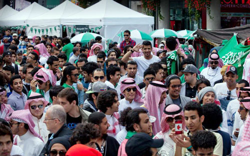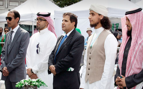 افتتح الملحق الثقافي السعودي في كندا الدكتور علي البشري حفل «يوم المملكة» في مدينة تورنتو الذي نظمه نادي الطلبة السعوديين في تورنتو أوائل هذا الأسبوع احتفالاً بالعيد الوطني للمملكة «الثالث والثمانين» وذلك وسط جمع غفير من المبتعثين والزائرين الذين جذبتهم الخيم التراثية التي ضمت في جوانبها العديد من المواد التراثية والثقافية التي تنقل للحضور واقع المملكة في الحاضر والماضي.