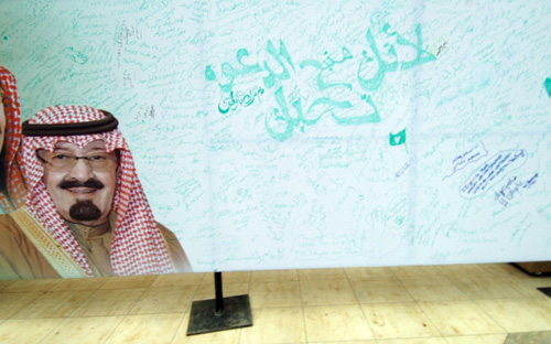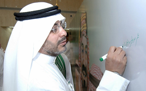 طوقت المشاعر الصادقة باليوم الوطني الـ 83 للمملكة صور المؤسس الملك عبدالعزيز بن عبدالرحمن – رحمه الله، والملك عبدالله بن عبدالعزيز خادم الحرمين الشريفين والأمير سلمان بن عبدالعزيز ولي عهده الأمين، عندما جسد منسوبو مدينة الملك فهد الطبية من مختلف الجنسيات إحساسهم اتجاه الوطن المعطاء، على لوحة ضخمة سمتها إدارة العلاقات العامة والإعلام بـ «بصمة وطن». اللوحة التي احتلت صدر البهو الرئيسي للمدينة حملت مشهدا معبرا لملحمة التوحيد ومساحة بيضاء للتوقيع تسيدها القلم الأخضر الذي استخدمه الجميع للتوقيع أو تسجيل عبارته أو تشكيل رسمته.