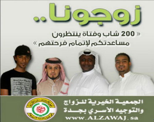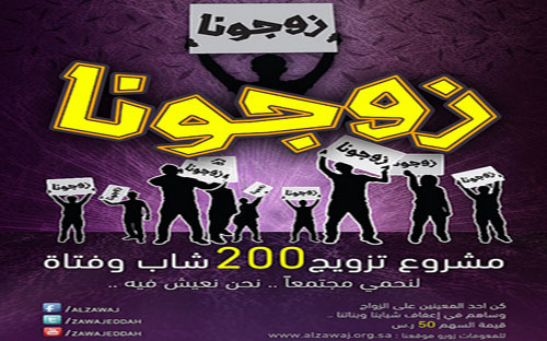 دشنت الجمعية الخيرية للزواج والتوجيه الأسري بجدة حملة «زوجونا» خلال موسم العشر من ذي الحجة. وتتضمن الحملة توظيف وسائط الإعلام, بما فيها الإعلام الجديد.