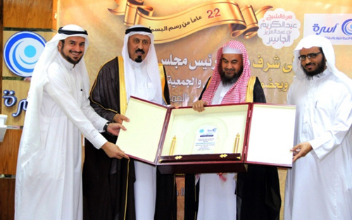 على شرف معالي رئيس محكمة الاستئناف بمنطقة القصيم الشيخ عبد الله بن عبد الرحمن المحيسن رئيس مجلس إدارة جمعية أسرة بمدينة بريدة، وبحضور أعضاء مجلس الإدارة وأعضاء الجمعية العمومية والمدير العام للجمعية ونائبيه ورؤساء الوحدات، وعدد من الضيوف من الوجهاء والأعيان, أقامت جمعية أسرة للزواج والرعاية الأسرية يوم الأربعاء الماضي في مركز مهارات الأسرة للتدريب ببريدة، حفل تكريم للشيخ عبد الكريم الجاسر الداعم لمبرة الجاسر الخيرية لإقراض الشباب المقبلين على الزواج التي تقوم الجمعية بإدارتها.