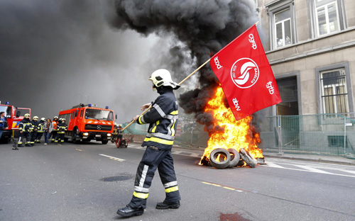 - قام مجموعة من رجال الإطفاء البلجيكي بإشعال النيران في إطارات وذلك احتجاجاً على شروط التوظيف في قطاعهم.... (رويترز)