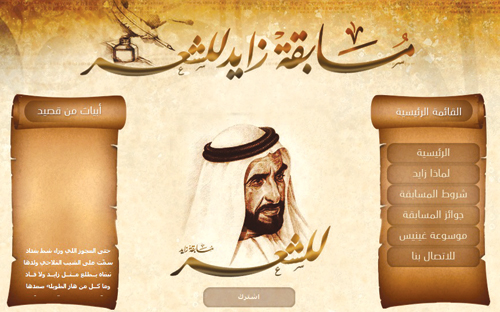 ذكر الشاعر عادل الشاهين رئيس اللجنة الإعلامية لمسابقة زايد للشعر عن انطلاق المسابقة التي تعتبر تكريما لروح الشيخ زايد بن سلطان آل نهيان رئيس دولة الإمارات العربية المتحدة مشيراً إلى أن المسابقة مفتوحة للجنسين وآخر يوم لإرسال المشاركات هو بتاريخ 1-1-2014م حيث سيفرز القصائد نخبه من الشعراء المعروفين مشيراً إلى أن قيمة المسابقة هي مليون درهم إضافة إلى مميزات أدبية أخرى يحصل عليها الفائز بلقب شاعر الشيخ زايد إضافة إلى أن أفضل 100 قصيدة ستصمم على قماش فاخر سيدخل موسوعة غينيس للأرقام القياسية إضافة إلى ديوان شعري يضم العديد من القصائد المشاركة في المسابقة.