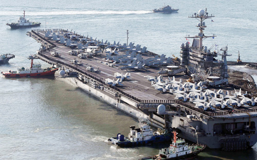 * استعدادات لنشر حاملة الطائرات الأمريكية جورج واشنطن في المناورات البحرية المشتركة بين الولايات المتحدة واليابان وكوريا الجنوبية. وذكرت وكالة أنباء «يونهاب» الكورية الجنوبية أن التدريب الذي يستمر ثلاثة أيام، والذي كان من المفترض أن يبدأ أمس الثلاثاء، تم تأجيله بسبب سوء الأحوال الجوية... رويترز
